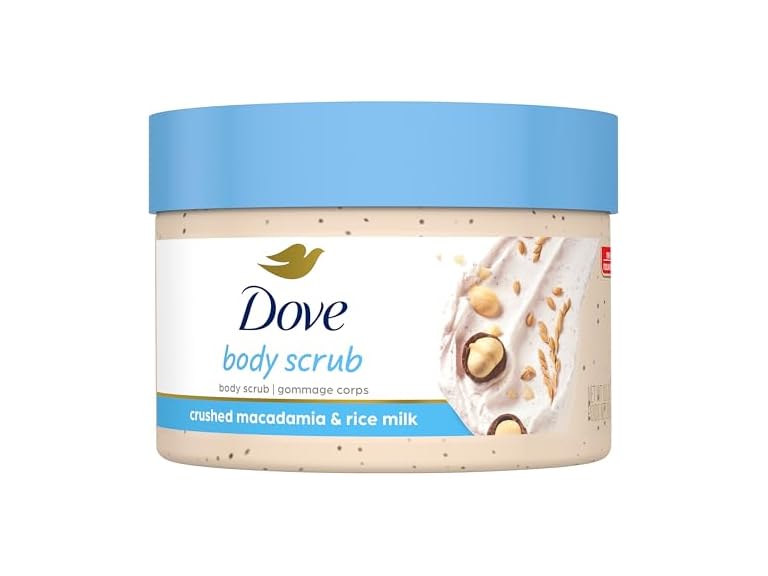 - MODERATE EXFOLIATION - Made with medium-sized exfoliating particles, Dove Exfoliating Body Polish Macadamia and Rice Milk is smooth and easily spreadable with a mild lather.