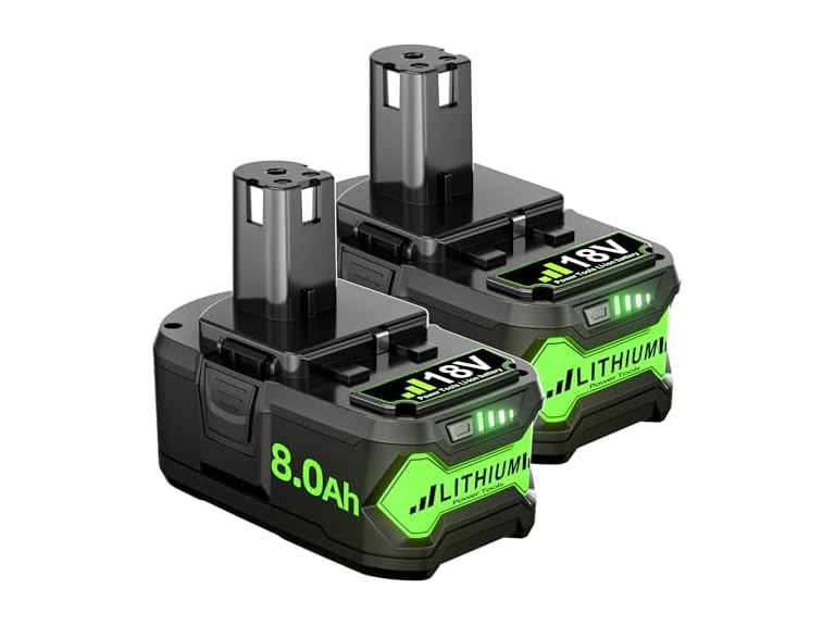 - đăBattery SpacesăHigh Capacity: 8.0Ah | Voltage: 18V | Battery Type: Lithium | 2 Packs Replacement for Ryobi 18V Lithium-ion battery. They provide more power and longer run time.