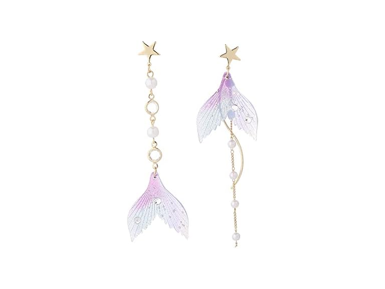 - (1) MEQNOIG Colorful Fishtail Earrings for Women Mermaid Drop Earrings (Purple)