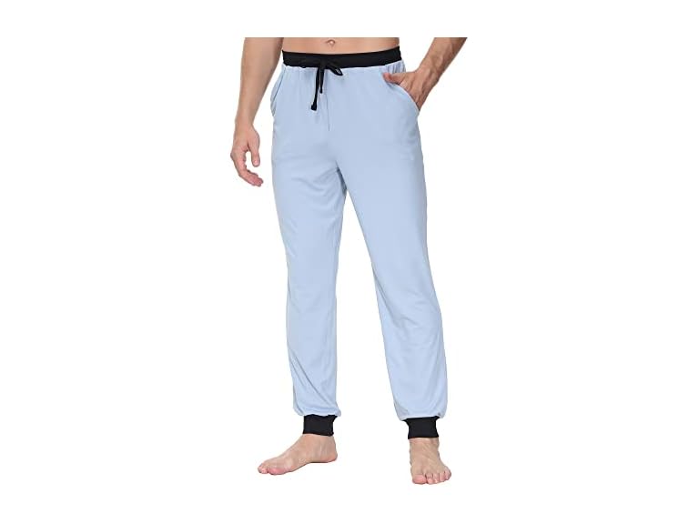 - (1) INK+IVY Men Sleepwear Pajama Bottom Sporty Sweatpants, Cuffed Jogger Soft Sueded Jersey, Loungewear Drawstring Trouser with Pockets, Light Blue, Medium