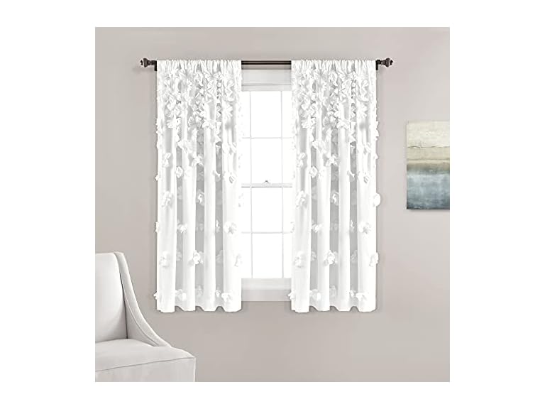 - Coquette Home Decor: This single window curtain measures 54 inches wide by 63 inches long and is crafted from a soft brushed microfiber fabric. These make great short curtains for living room or bedroom with coquette, glam, or vintage decor style.