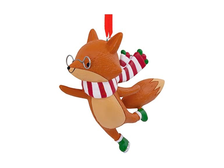 - Skate into the holidays with this cute fox Hallmark Christmas ornament. The spirited fellow wearing a red and white scarf and green ice skates makes a festive addition to your tree.