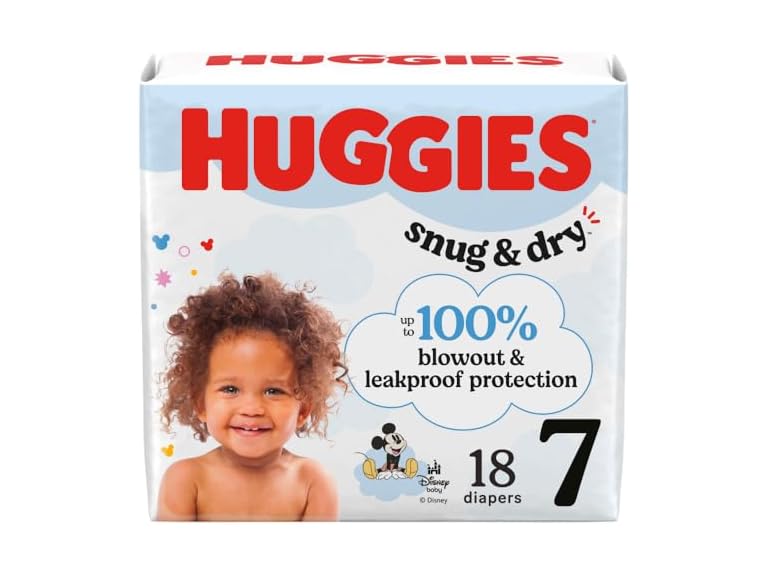 - (1) Huggies Size 7 Diapers, Snug & Dry Baby Diapers, Size 7 (41+ lbs), 18 Count, Packaging May Vary
