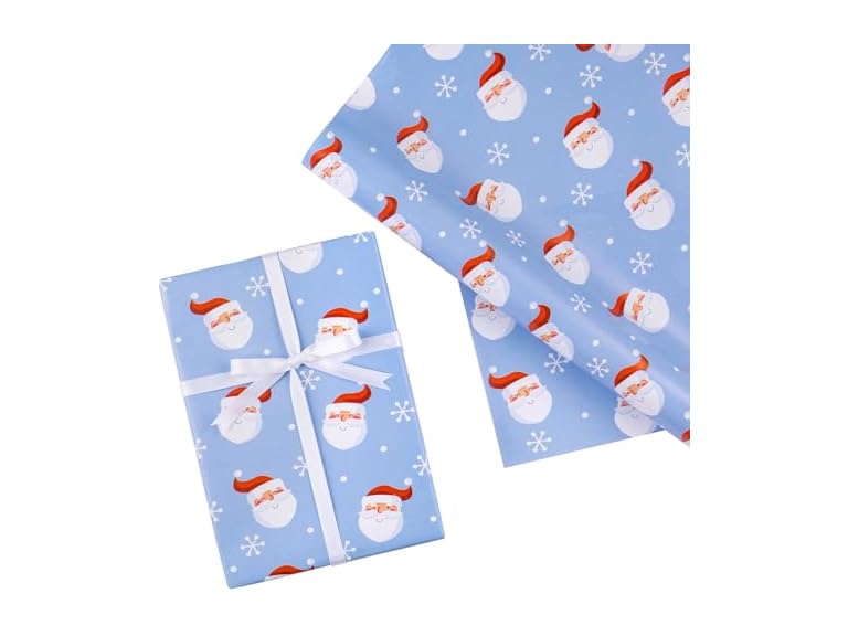 - Christmas Design: Our Christmas wrapping paper is chosen with smiling Santa Claus, combined with winter snowflake elements, with the main color of blue and white, making your gifts full of winter atmosphere and joyful Christmas holiday atmosphere!