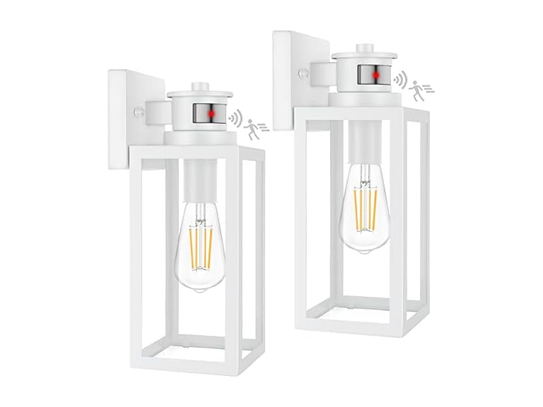 - 【Waterproof &Anti-rust Well-Made】Our motion sensor outdoor lanterns are made by metal and aluminum in white finish and sturdy clear glass, can be greatly used for years and endure any environment, being resistant for all weathers: rain or snow, ultra high or low temperatures. You will not worry these exterior lights for house will be rusted or corroded anymore
