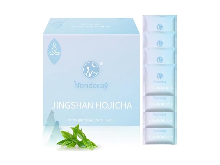 - PREMIUM ORGANIC JINGSHAN HOJICHA TEA BAGS---NONDECAY’S Nondecay’s Jingshan Hojicha Tea Bags use fresh Chinese green tea leaves roasted using a traditional Japanese-inspired technique. This process enhances the tea’s natural sweetness, reduces bitterness, and unlocks a warm, nutty flavor. Rich in antioxidants and caffeine, it energizes your day while supporting immunity and digestion—brew hot for comfort or iced for a smoky refreshment.