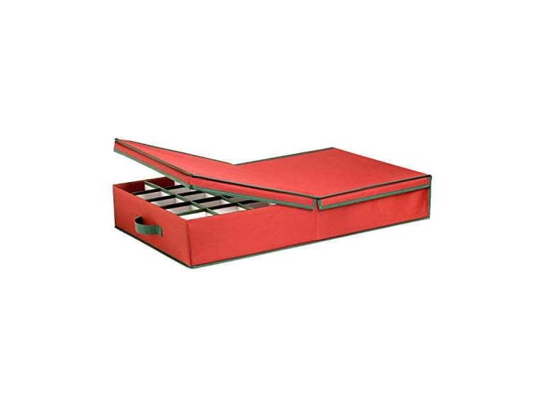 - (1) Honey-Can-Do Ornament Storage Box with Dividers, Red/Green Large