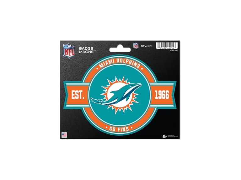 - (1) Rico Industries NFL Football Miami Dolphins Standard Badge Magnet - for Car, Fridge