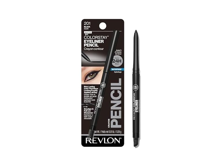 - (1) Revlon ColorStay Pencil Eyeliner with Built-in Sharpener, Waterproof, Smudgeproof, Longwearing Eye Makeup with Ultra-Fine Tip, Black, 0.01 oz