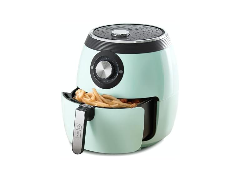 - (1) DASH Deluxe Electric Air Fryer + Oven Cooker with Temperature Control, Non-stick Fry Basket, Recipe Guide + Auto Shut Off Feature, 1700-Watt, 6 Quart - Aqua