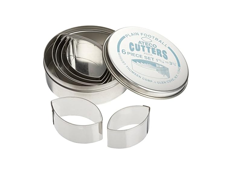 Ateco's Plain Football Cutter Set includes six cutters with plain edges. Cutters made of stainless steel and range in size from 1 15/16 to 3 3/4-inches. Cutters are perfect for cutting pastry, cookies, dough, or as a form for food. By Ateco. Since 1905, Ateco has supplied fine restaurants and bakeries with quality built, specialty baking tools. Ateco products are internationally renowned for their high quality. When you use Ateco products, you’re not only enjoying quality craftsmanship, you’re also enjoying quality design; the products are a result of over one hundred years and four generations of innovation and development.