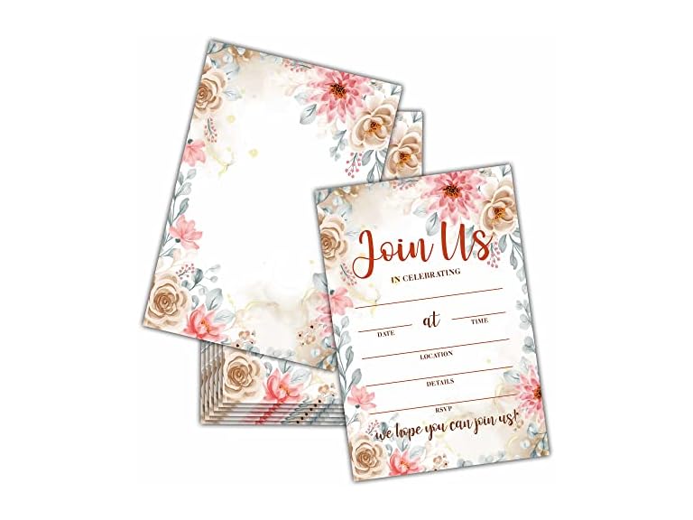 - Quantity: 25 Fill-in Invitation Cards With 25 Envelopes Set. Invite friends and families with these beautiful invitations cards can meet your party needs. Each card is double-sided printed and has an ample fill-in space design.