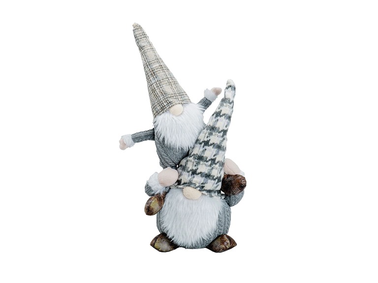 - 23" Piggy Back Gray Plaid Gnome