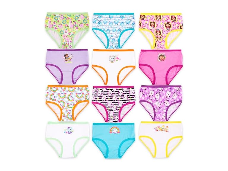 - (1) DreamWorks Gabby's Dollhouse Girls' 12-PK of 100% Cotton Panties in Advent Box Makes Holidays & Potty Training Fun, Sizes 2/3T, 4T & 5T, 12-Pack
