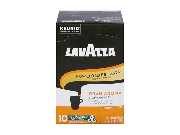 - (1) Lavazza Gran Aroma Single-Serve Coffee K-Cup® Pods for Keurig Brewer, Light Roast, 10-Count Box