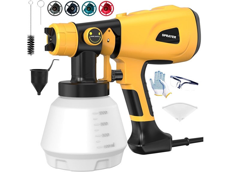 - Multiple Nozzle Sizes & Three Spray Modes: LESONJOY 1000W paint sprayer comes with 4 nozzle sizes (1.0mm, 1.8mm, 2.5mm, 3.0mm), perfect for various painting projects around the house, whether it's fences, walls, furniture, doors, or garden tables and chairs. It also features horizontal, vertical, and circular spray modes to meet different spraying needs