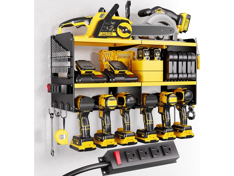 - Store 50+ Kinds of Tools: Our cordless tool organizer is suitable for both indoor and outdoor use and compatible with pegboards. You can store your charging stations, batteries, toolboxes, drill bits, hammers, and other garage tools without any extra hassle.Considerate Father's Day gift and men's gift