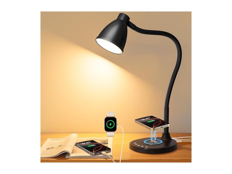 - Dual Charging Hub + Wireless Power for Home Office: Upgrade your workspace with BOHON's multifunctional desk light featuring dual USB-A/USB-C ports (5V/2A) and a 12W fast wireless charger. Effortlessly power phones, tablets, or e-readers while working - whether using this bedside lamp as a nighttime charging station or a home office desk lamp. Pro Tip: Thick phone cases may interfere with wireless charging.
