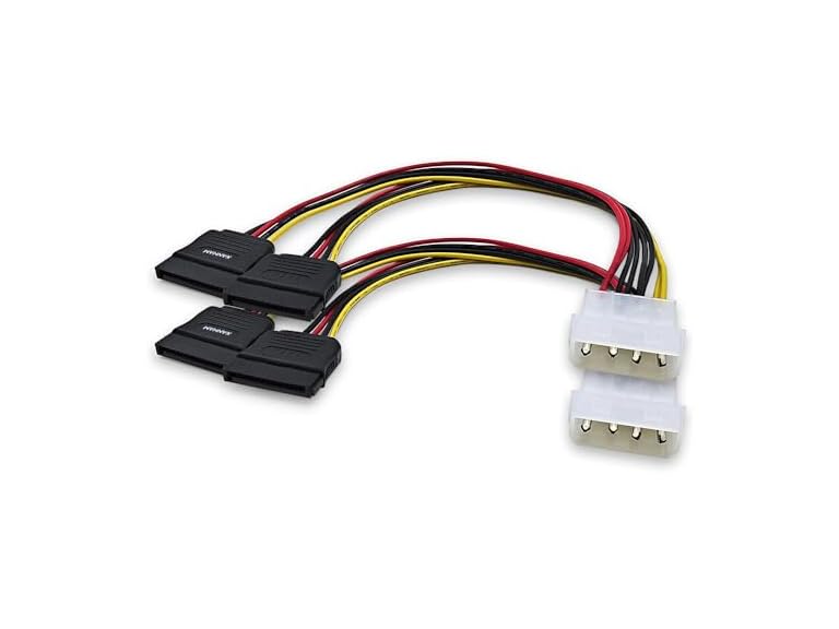 - Molex to SATA Splitter: One 4 pin Molex male connector on the one end and two 15 pin SATA female connector on the other end, this power cable provide flexible option for SATA power cable connects the latest Serial ATA hard drives or optical drives to a power supply with Molex LP4 ports.