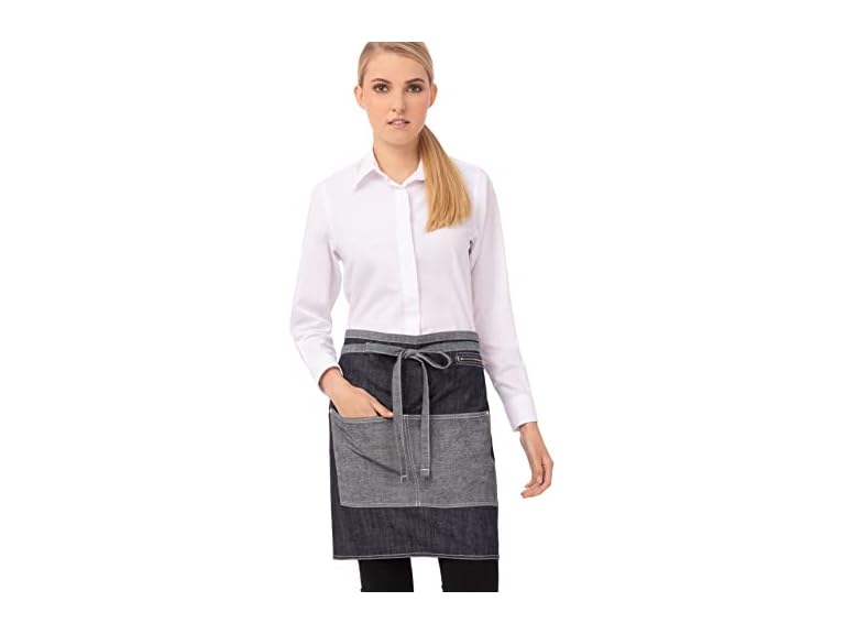 - (1) Chef Works Unisex Manhattan Half Bistro Apron, Indigo Blue, One Size