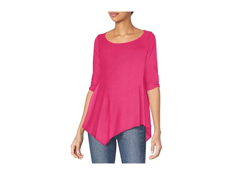- (1) Star Vixen womens Star Vixen Women's Hanky Hem Top, Elbow Sleeve With Cinch Detail Blouse, Fuchsia, 2X US