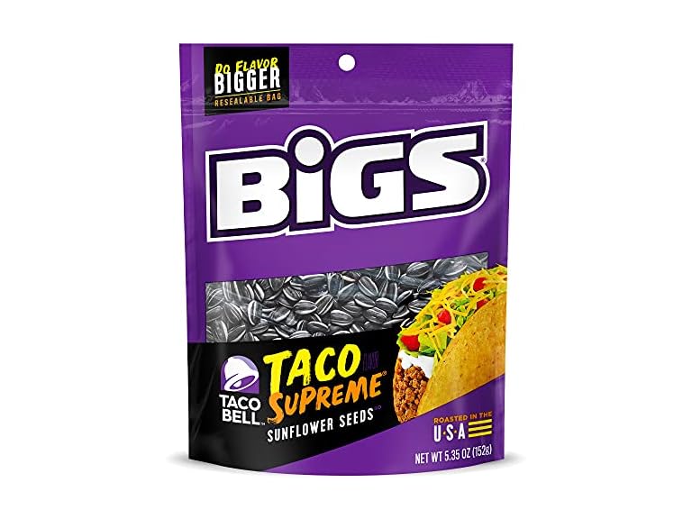 - Contains one 5.35-ounce bag of BIGS Taco Bell Taco Supreme Sunflower Seeds