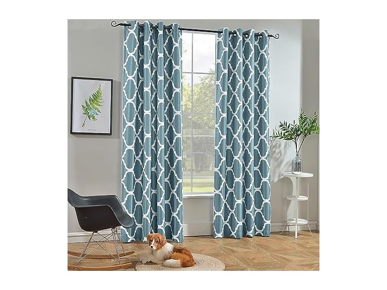 - (1) Melodieux Moroccan Fashion Room Darkening Blackout Grommet Curtains for Living Room, 52 by 96 Inch, Dusty Teal (1 Panel)