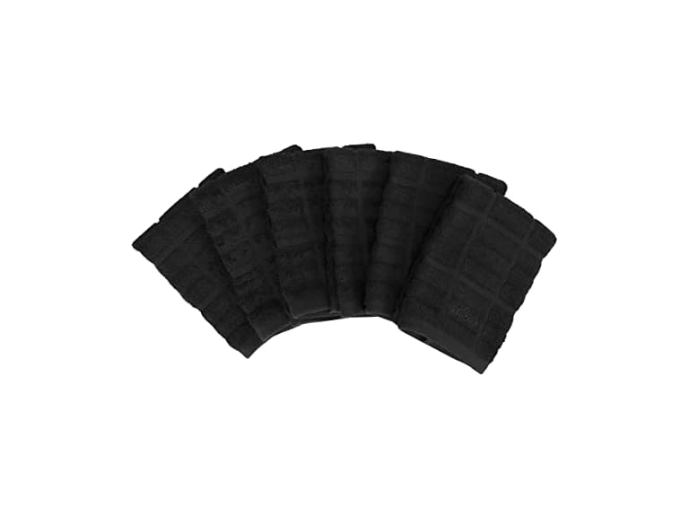 - (1) All Clad Premium Solid Dish Cloth Set: Highly Absorbent, Super Soft - 100% Turkish Cotton Terry Looped, 13"x14" Dish Towels for Cleaning & Drying Dishes, Pans, Glassware, or Counters, 6-Pack, Black