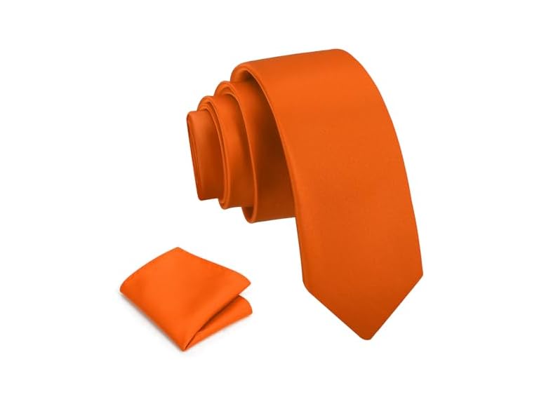 - [Tie Set]: Orange tie with pocket square set, solid color tie with slim fit to make you stand out from the crowd