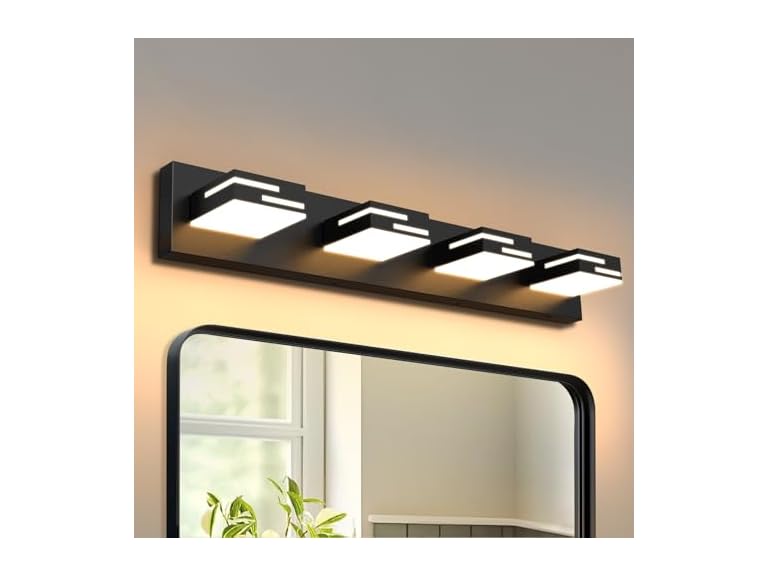 - 【High Brightness】 32W LED vanity lights for bathroom, emitting 2800 lumens of bright, flicker-free light. Provides brighter illumination than traditional 140W bulbs, perfect for makeup, grooming, and detailed tasks. The frosted acrylic lampshade evenly diffuses the light, offering clear, comfortable illumination while protecting your eyes from strain