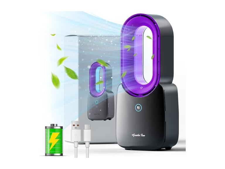 - [Futurist Bladeless Design]: The use of turbo technology and bladeless design ensures the safety of children and pets, eliminates the risk of injury, and facilitates cleaning. In addition, the four rubber pads below protect the table while preventing sliding