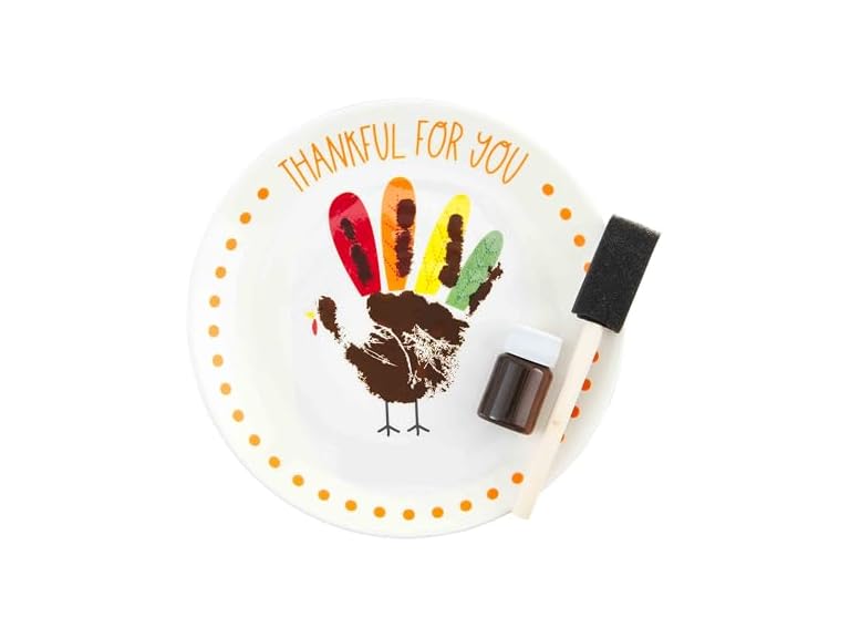 Show loved ones how thankful you are with our Turkey Handprint Set. The set comes with a ceramic platter. The platter is made from dolomite. The platter comes with non-toxic paint.