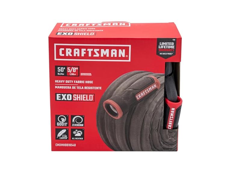 - CRAFTSMAN ExoShield Heavy-Duty Fabric Hose - Industrial-Grade Lightweight Garden Hose, 50 Feet x 5/8 Inch