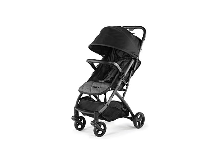- ADDITIONAL FEATURES: This compact stroller also includes auto lock, a child snack tray, a large storage basket, smooth glide wheels, child and parent cup holders, and a 5-point safety harness for added security.