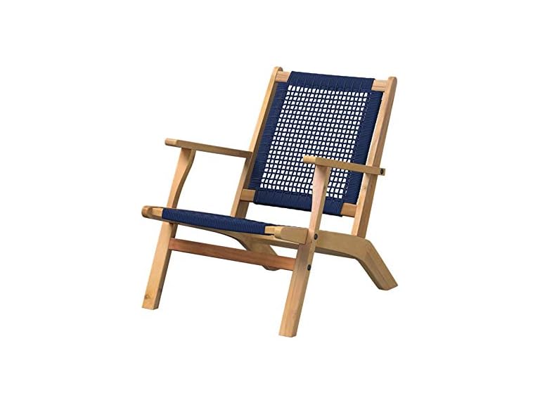 - Balkene Home 63634 Vega Natural Stain Outdoor Chair Acacia Wood Construction Woven Web Seat Mid Century Design Comfortable Reclining Armchair Patio Lawn Garden Backyard Deck - Navy Blue Cording