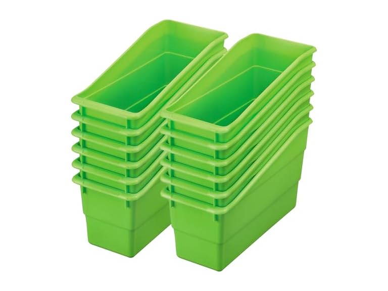 Introducing Really Good Stuff Durable Book and Binder Holders - the ultimate organizational solution for your classroom library and materials. These high-quality plastic Book Bins are designed to withstand heavy use, making them perfect for teachers who need reliable and durable storage options.Our Book Bins are not just ordinary bins; they are versatile and can accommodate books, folders, files, and binders, keeping everything neatly organized. Whether you're setting up a classroom library or organizing classroom materials, these Sturdy Book Bins are a must-have.Teachers love our Really Good Stuff Book Bins for their exceptional quality and functionality. They are specifically designed for classroom use, making them ideal for book bins for the classroom, classroom book bins, and book bins for the classroom library. These plastic book bins are built to last, ensuring long-term usage and value for educators.In addition to being perfect for organizing books, these Book Bins are also great for holding magazines, folders, files, and more. They are durable magazine, book, folder, file, and binder holders that provide convenient storage solutions for your teaching materials.The set includes 12 pack book bins, giving you ample storage space to create an organized and efficient learning environment. It comes in 14 different colors (Black, blue, neon blue, clear, green, neon green, orange, pebble, pink, purple, red, water, white and yellow) that adds a touch of brightness to your classroom decor while making it easy for students to locate and return books to their designated bins.Upgrade your classroom organization with Really Good Stuff Durable Book and Binder Holders. Experience the quality, durability, and functionality that our plastic storage bins bring to your teaching space. Order now and revolutionize your classroom storage with Really Good Stuff book bins!