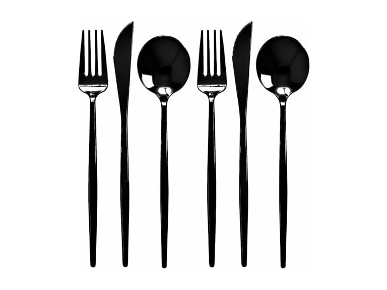 - MODERN ELEGANT FINISH: Designed with a glossy black finish and smooth, refined edges, this flatware set brings contemporary elegance to your table settings for upscale events.