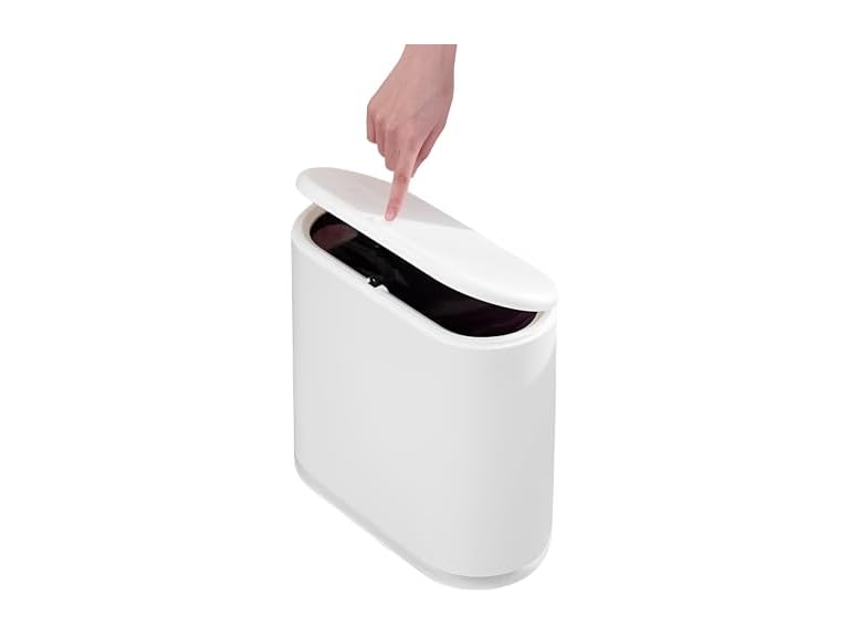 - FITS ALMOST ANYWHERE: A stylish trash can with a modern slim design that looks great and easily fits into narrow openings and small spaces. Fits well in bathrooms, offices or wherever space is limited.