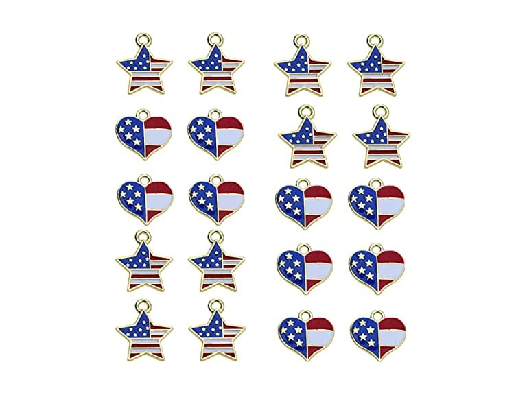 - (1) Ximkee 20Pcs Red White and Blue American Flag Star Heart Shaped Charm Pendant Gold Plated Dainty Ornament Jewelry Making Independence Day Decoration