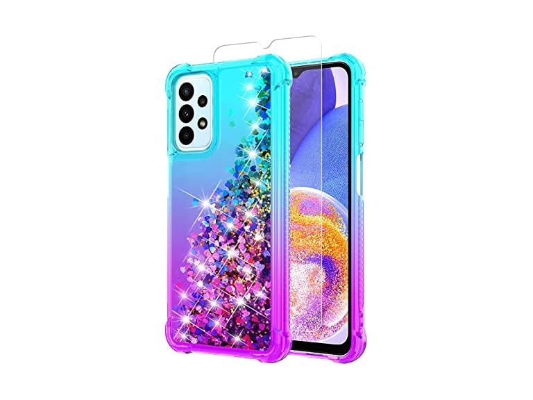 - (1) YZOK for Galaxy A23 Case with HD Screen Protector,Gradient Quicksand Glitter Liquid Floating Waterfall Durable Girls Cute Phone Case for A23 5G (Teal/Purple)