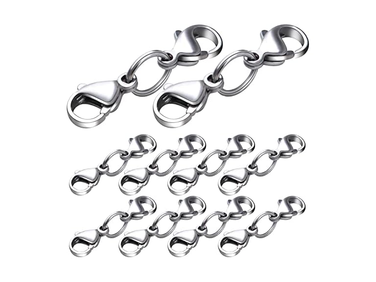 - Package Includes: You will receive 10 sets stainless steel color double lobster clasp extenders in total, including 20pcs lobster clasps and 10pcs open jump rings. Enough for your various jewelry crafts needs