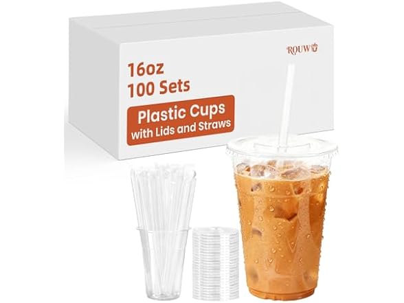 - 16 oz Clear Plastic Cups with Lids and Straws (100 pack)