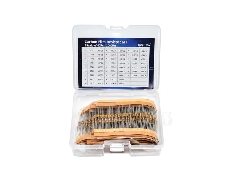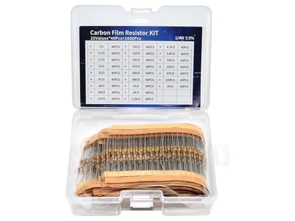- (1) DSSRQI 1000Pcs 25 Values Resistor Kit 1/4W