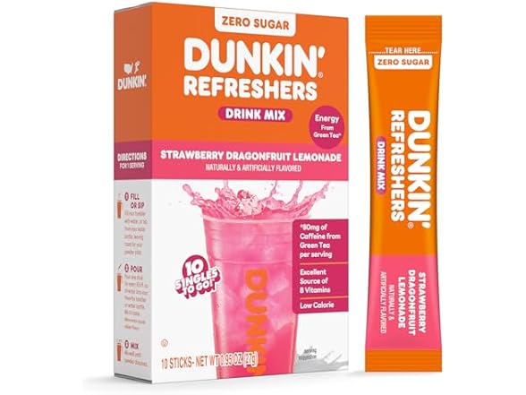 - VITAMIN PACKED AND GREAT TASTE: Now you can bring your favorite Dunkin’ Refreshers anywhere. Dunkin’ Refreshers Drink Mixes are an excellent source of B Vitamins and contain the same bold, refreshing flavors you know and love in a convenient stick pack. Just add to water.