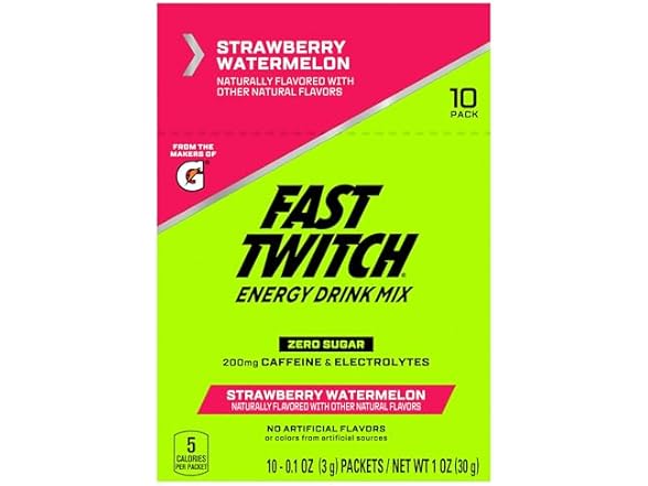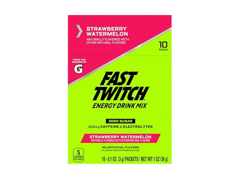 - Includes 1 - 10-count box of Fast Twitch Energy Drink Mix powder packets, Strawberry Watermelon