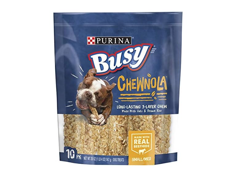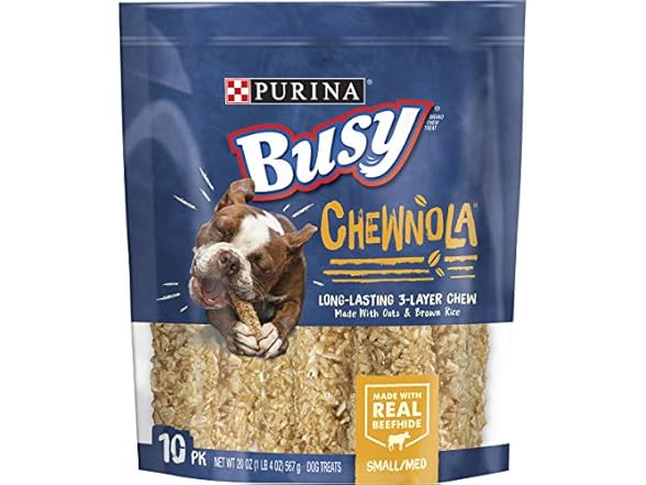 - (1) Purina Busy Rawhide Small/Medium Breed Dog Bones, Chewnola with Oats & Brown Rice - 10 ct. Pouch