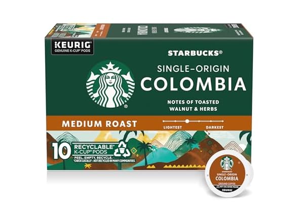 - PREMIUM COFFEE IN A K-CUP POD: Enjoy the Starbucks coffee you love at home with a box of 10 Starbucks Single-Origin Colombia Medium Roast K-Cup pods, designed for Keurig coffee makers