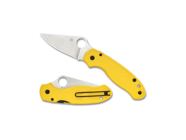 - SECURE GRIP IN ANY CONDITION: The bright yellow, injection-molded FRN handle features Spyderco's Bi-Directional Texturing for a secure grip, even when hands are wet