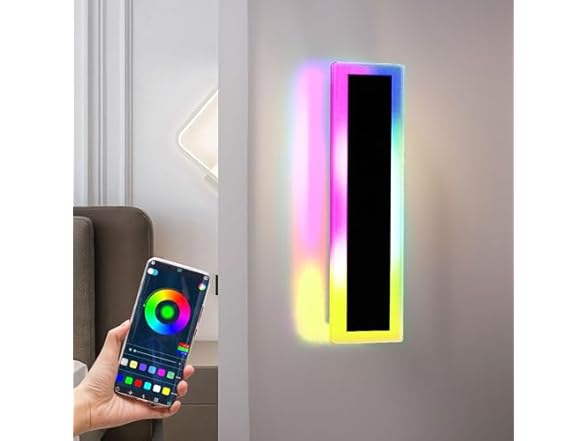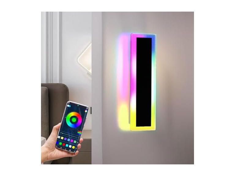 - ASLONG 1PC 12In LED RGBW Wall Light with APP Control, IP66 Waterproof Smart RGB LED Wall Mount Lighting Fixture, Color Changing Ambient Light Exterior Wall Sconce for Outdoor Indoor Room Decor (1Pack)