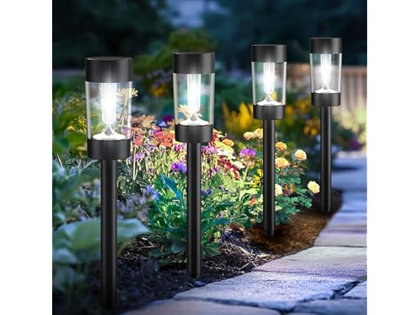 - WIDE APPLICATION & EASY TO INSTALL: No switch button, No wiring required. Just assemble the parts together and insert stake into the soil to work. You can use solar path lights everywhere like garden, lawn, walkway, pathway, driveway or yard. The cool light create a nice feeling when you take a walk with your family, friends. Our solar lawn lights are designed just for you to be easy to use. Enjoy your glowing garden with no maintenance for free! while saving your money on electricity